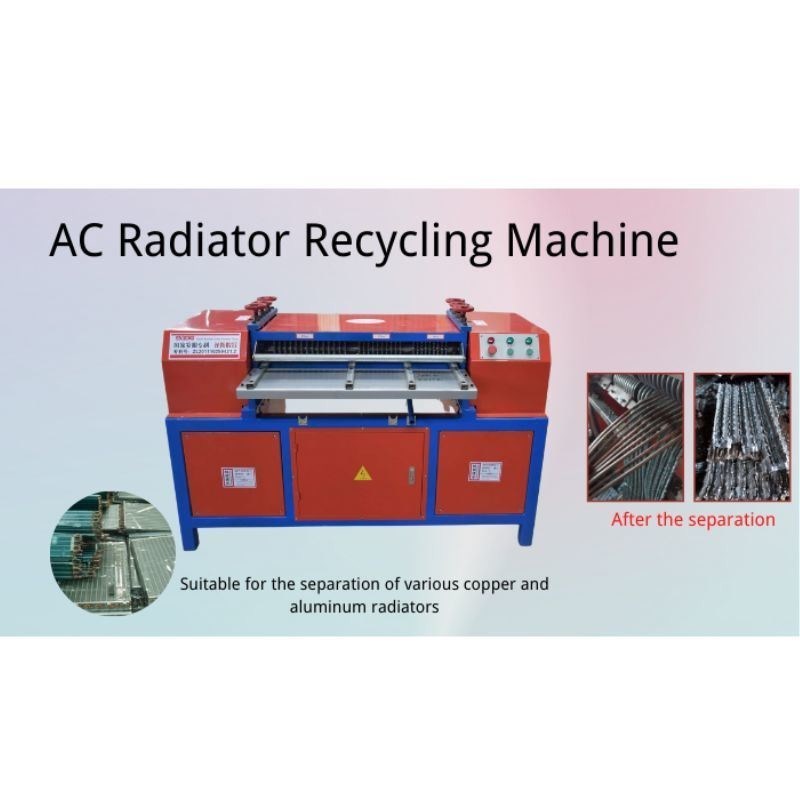 1. Radiatorseparatormachine is geschikt voor het ontmantelen en scheiden van het interne koper en aluminium van afval airconditioners, oude radiatoren en afvalwatertanks;